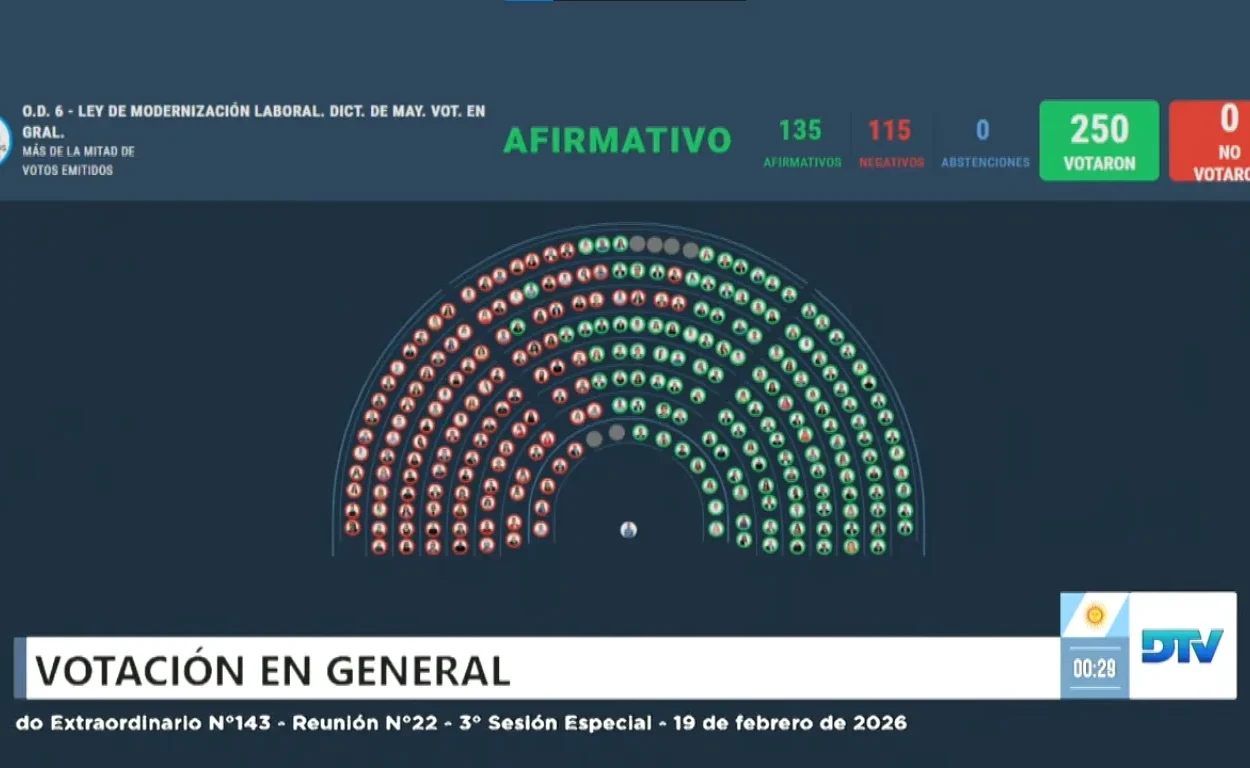 Con 135 votos positivos y 115 negativos se votó en general el proyecto de “modernización laboral’ que implica una quita de derechos para los trabajadores de este país. Un avance en la flexibilización que festeja La Libertad Avanza y donde vemos a Karina Milei cómo se nos ríe en la cara.