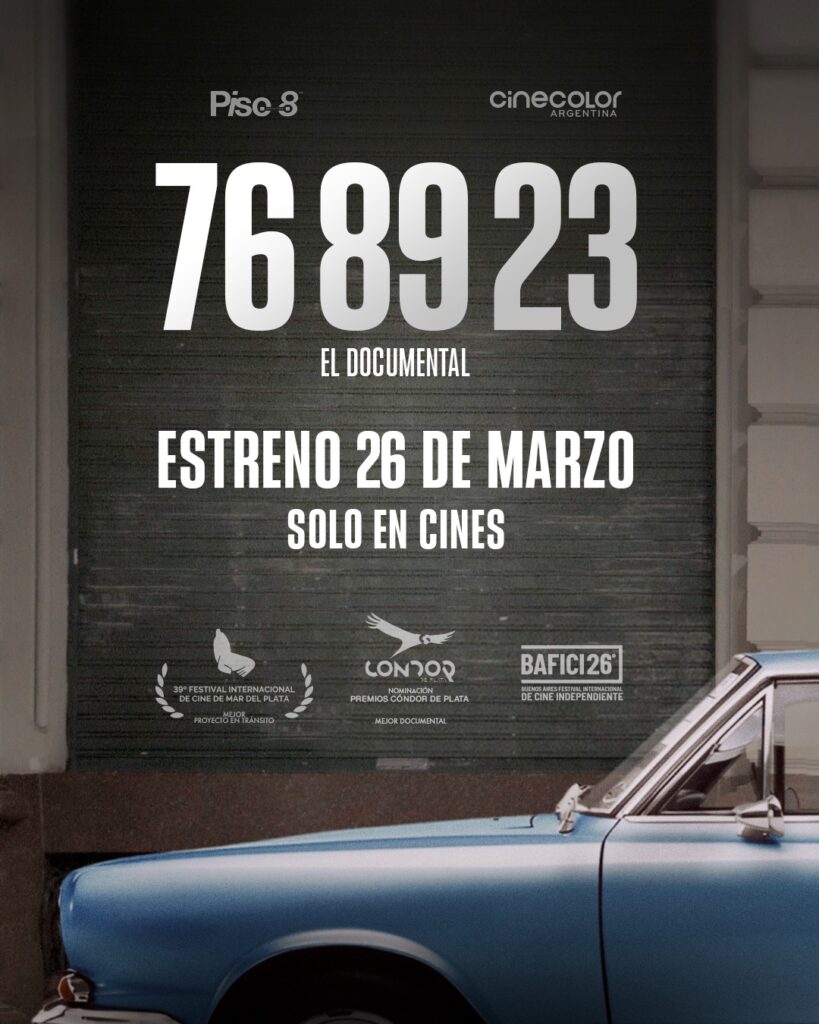 El próximo 26 de marzo el documental 76 89 23 dirigido por Federico Benoit, tendrá su estreno comercial en salas del país, en el marco del 50° aniversario de la última dictadura cívico-militar, fecha clave para repensar el pasado, el presente y el futuro de la Argentina. El film acaba de ser nominado a los Premios Cóndor en la categoría Mejor Documental y participó, hace pocos días, de la selección oficial del 10° SANFICI, Santander Festival Internacional de Cine Independiente de Colombia, que se desarrolló del 23 al 27 de febrero. La proyección en el marco de este festival marcó su estreno latinoamericano.